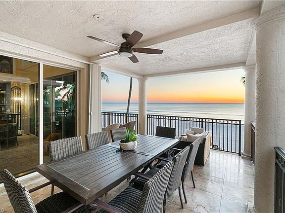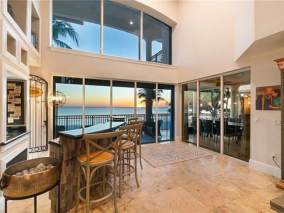 Beautiful direct beachfront home on Bonita Beach! Boasts spectacular Gulf views from nearly every window. This 4618 sq. ft. fortress is crafted with marble floors, tray ceilings, hurricane impact windows/sliders, HURRICANE SHUTTERS, NEWLY REPLACED PRIVATE ELEVATOR, NEW WATER HEATER & NEW GARAGE DOORS. This residence is an entertainer’s dream with 4 bedrooms + den & a bonus room, 5.5 bathrooms & a pool/spa with a new pool heater & a water feature. Enjoy easy access to the beach, while also having a RARE fenced-in backyard that is perfect for pets or extra privacy! The main level offers an expansive lanai, 2 guest bedrooms with en-suite bathrooms, formal dining area with spectacular Gulf views, a wet bar with wine cabinet & a spacious kitchen. Chef’s kitchen offers granite counters, double oven & a gas cooktop. The 3rd level includes a guest bed/bath, den & expansive primary bedroom with a sitting area, wet bar & private balcony to enjoy the spectacular sunsets. The 4th floor is perfect for a private guest wing with a media room, bonus room/bath, sundeck with phenomenal Gulf views & a sunrise balcony to perfectly capture both the Gulf & Bay views. Close to several fantastic restaurants and only a 10-minute drive to Mercato and the Promenade, with Waterside Shops, Coconut Point, Naples 5th Ave, and the International Airport nearby.