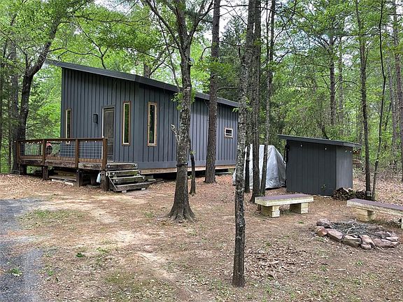 Get away from it all and relax, surrounded by nature in this cozy mountain getaway on the doorstep of massive Ouchita National Forest. This newly (2023) built cabin is rock solid, sitting on twelve concrete columns upon a natural rock formation. The full foam-insulated (walls, roof, floor) structure, sheltered from the blistering sun in the summer ensures included heat and AC can manage temperatures for pennies on the dollar. A sixteen-foot-tall wall of windows overlooks the wrap-around deck and forest below on one North, while an eleven-foot ceilings