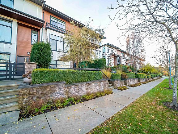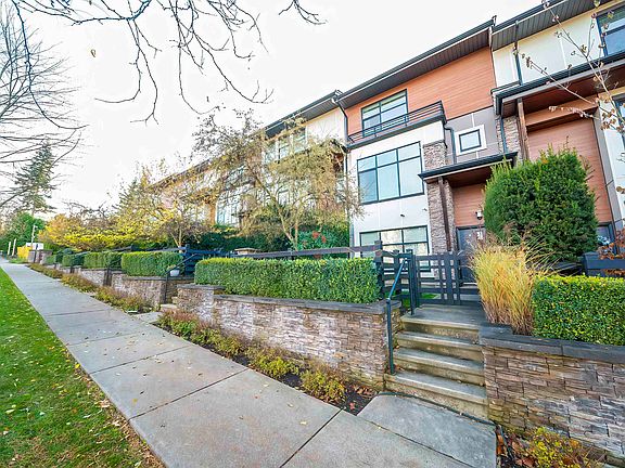 Welcome to this bright 1,900 sq ft 4 bed 4 bath townhome in the heart of South Surrey. Main floor offers 12 ft ceilings, oversized windows and an open-concept layout filled with natural light. Gourmet kitchen with s/s appliances, quartz counters and a spacious island. Entry level features a bedroom with full ensuite—great for guests, in-laws or a home office. Fenced, landscaped front patio for outdoor enjoyment. Upstairs has 3 bedrooms including a primary with vaulted ceiling, walk-in closet and ensuite. Side-by-side double garage plus extra parking pad. Amenities include gym, lounge and outdoor fire pit. Prime location: 2 minutes to Morgan Crossing & Grandview Corners; walk to Sunnyside Elementary and Semiahmoo Secondary; near Southridge School Open House Nov 22 & 23, 2–4 PM.Welcome.