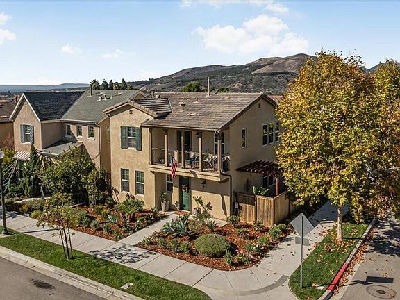 This is a stunning contemporary home in Ventura's desirable Solana Heights community.Built in 2018, this beautifully maintained 4-bedroom, 3-bath residence blends modern design, comfort, and coastal charm. The inviting open-concept layout features high ceilings, abundant natural light, and stylish finishes throughout.The gourmet kitchen is the heart of the home, offering quartz countertops, stainless steel appliances and an oversized island highlighted with pendant lighting accents, perfect for casual dining or entertaining. Multiple dining options include a formal dining area, breakfast bar seating, and a private outdoor patio ideal for evening meals.A convenient main-level bedroom and full bath provide flexibility for guests or multi-generational living. Upstairs, spacious bedrooms and a serene primary suite offer comfort and privacy, in addition to an open loft ideal for an office space or gym. Situated on a desirable corner lot, this home enjoys expanded patio space with a private spa, a 2-car garage, and mountain views. Residents of Solana Heights appreciate the community's parks, picnic areas, and playgrounds all just minutes from Ventura's beaches, hiking and biking trails, and the vibrant downtown scene.Experience elevated coastal living in this immaculate Ventura home where style, comfort, and location come together beautifully.