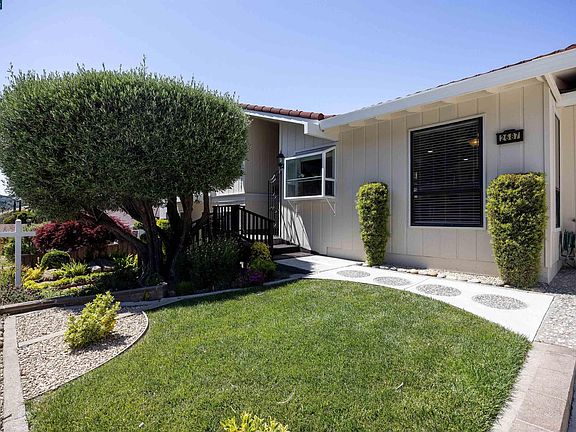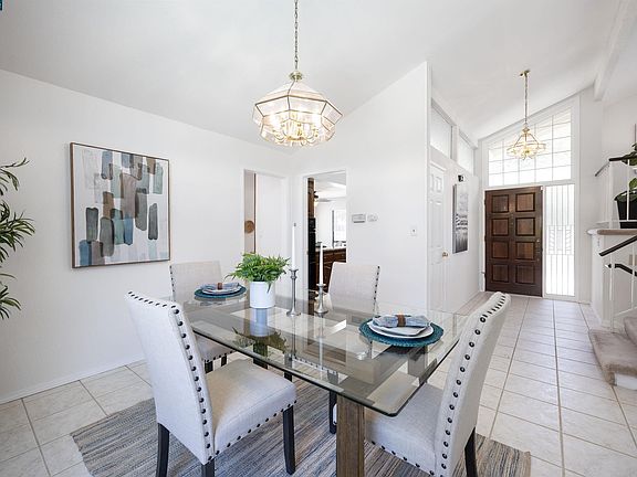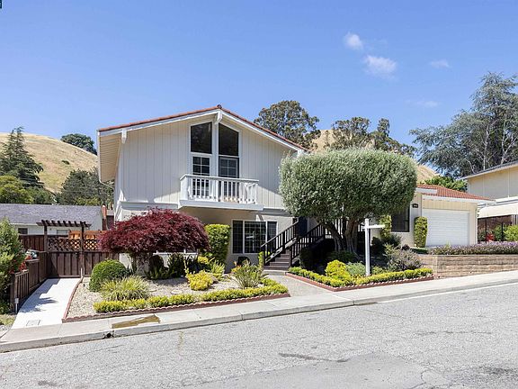 This is a spacious split-level home on a 7,600-square-foot lot in the heart of Pinole Valley. With mid-century charm, easy-care landscaping, and a backyard pool, it’s a suburban paradise with enormous appeal. The front landscaping offers curb appeal with minimal maintenance. Enter through the tiled front patio into a gracious white-tiled foyer and the formal dining room on the main level. An open family room features high ceilings, a wood-burning fireplace in a tiled hearth, and a slider that opens onto the back patio. The kitchen has granite countertops, updated appliances, and a sunny breakfast nook. Up a level is an inviting living room with great angled windows over French doors to the balcony. Across the hall is the primary bedroom with an en suite featuring a glass-enclosed shower and double vanity. The lowest level contains three bedrooms, a full bath, and a spacious laundry room. One bedroom has backyard access and a view of the pool. Step outside into a backyard oasis of flowering plants and a covered patio with plenty of space for outdoor dining or entertaining. The 2-car garage has an extra-wide drive and a gated pass-through. The side yard that can accommodate an RV or boat. The neighborhood is minutes away from Trader Joe’s and Sprouts, and Peet’s Coffee.