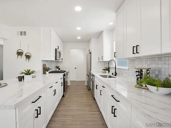 Welcome to 2687 Elyssee St — a fully remodeled 3-bedroom, 2-bath home nestled on a quiet street in central San Diego. This inviting home has been completely updated with brand-new dual-pane windows and doors, new flooring throughout, fresh interior and exterior paint, and carefully designed landscaping that enhances curb appeal. The custom kitchen features designer tile, quartz countertops, new appliances, and plenty of storage for everyday living. Ideally located close to schools, shopping, and freeway access, this move-in-ready home offers modern comfort in a prime location.