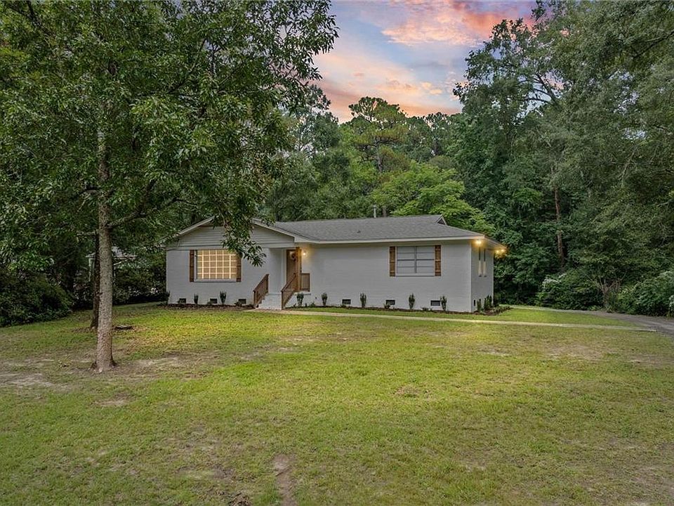 Modern farmhouse on ~ 1.74-acre private lot in West Mobile! Welcome to 2687 Lynndell Drive, a beautifully renovated ranch-style home offering rare acreage, privacy, and convenience in a quiet single-street neighborhood. Set on approximately 1.74 acres, this West Mobile estate lot provides space to spread out—perfect for entertaining, gardening, pets, or adding a pool or guest house. Inside, the open-concept floor plan combines farmhouse charm with modern design. The updated kitchen features ample counter space, stainless appliances, and backyard views overlooking your private acreage. The spacious living room with fireplace flows naturally to the kitchen/dining area and outdoor spaces. The primary suite includes a luxurious private bath, while two additional bedrooms share a second updated full bath. A large laundry room and third full bath add extra convenience and function. Outside, enjoy peaceful country-style living with easy city access—complete with an attached 2-car carport and a huge detached 2-car garage/workshop, perfect for hobbies, tools, or extra vehicles. This move-in-ready acreage property offers the best of both worlds: privacy, space, and tranquility just minutes from top-rated schools, parks, libraries, shopping, and dining. Homes with this much land and this level of finish are rare in West Mobile—come see why this one stands out. Experience the beauty of modern living on ~ 1.74 ACRES—your private West Mobile retreat awaits!
