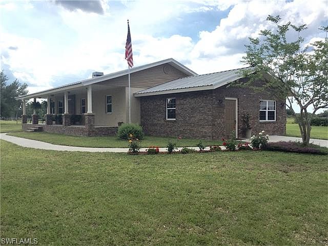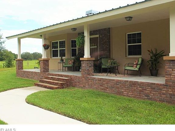 Looking for a modern day farmhouse on acreage in the country? Look no further.... This custom built home features 3 bedrooms 2 baths and a bonus 20' x 24' room. Open floor plan boasts a fireplace, wood laminate flooring, stainless steel appliances, an in-line wall mount, hurricane windows, newer hot water heater and a/c unit (both 3 years old), fresh paint inside and out and much more. The outside features include concrete walkway and asphalt driveway, 12'x18' she-shed with board and batten cypress siding and finished interior, an 8'x12' chicken coop, 30'x48' barn with 12x20 enclosed room, a 48'x48' livestock barn with 2-12'x12' horse stalls, 12'x12' tongue & groove pine tack room and 3 stall dog pens with concrete floors. The property has 2 cow wells and is fenced and cross-fenced. Oaks, cypress, grapefruit, key lime, avocado, grapevine and guava trees surround the homestead and are awaiting your arrival! Call today for a private showing.