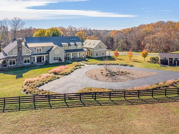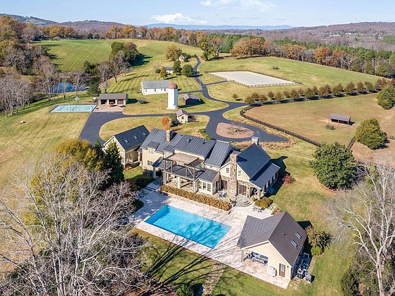 Just 10 minutes from Charlottesville, Milton Farm spans 54 acres of rolling countryside with a well-designed estate and exceptional amenities. The nearly 8,000 sq. ft. main residence includes five bedrooms, six baths, and generous indoor and outdoor living spaces. The pool, hot tub, and pool house offer a perfect space for entertaining, complemented by expansive patios and landscaped grounds. Three cottages provide ample guest accommodations or rental opportunities. A detached three-car garage includes an upper-level suite, perfect for an office, gym, or private guest retreat. Equestrian facilities include a three-stall barn, a run-in shed, a large paddock, and an outdoor riding ring. An equipment and tractor shed offers convenient storage. The property has two ponds—one located in the paddock and the other stocked, featuring a dock and bubbler for private use. Recreational amenities feature a lighted sport court for pickleball and basketball, a sunken firepit, and wooded trails for walking, running, or riding. Open fields and wooded areas create a balance of usable land and natural beauty. Milton Farm offers a rare mix of comfort, space, and prime location—with easy access to UVA, Downtown, I64 & Keswick Hall.