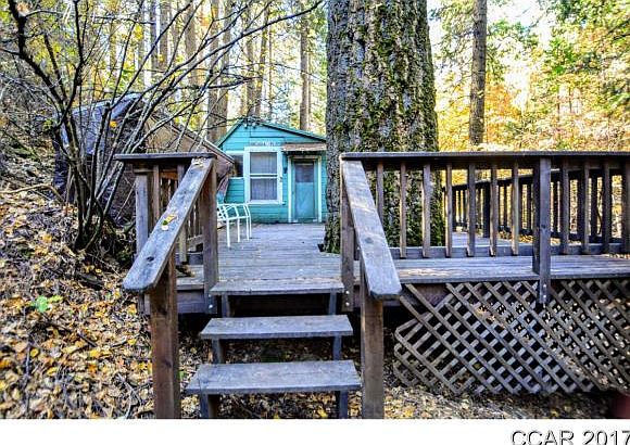 Classic rustic cabin on Moran Creek within Fly-in Acres, priced to sell in current condition. Amble down to your own private refuge on nearly 4 acres of forested land. Listen to the creek from the spacious deck while the woodstove warms the house on cool autumn eves. Dream cabin for anyone who loves to rough it or wants to tinker on their place. Access to Fly-In Lake for Summertime fun. Electric service from PG&E, composting toilet.