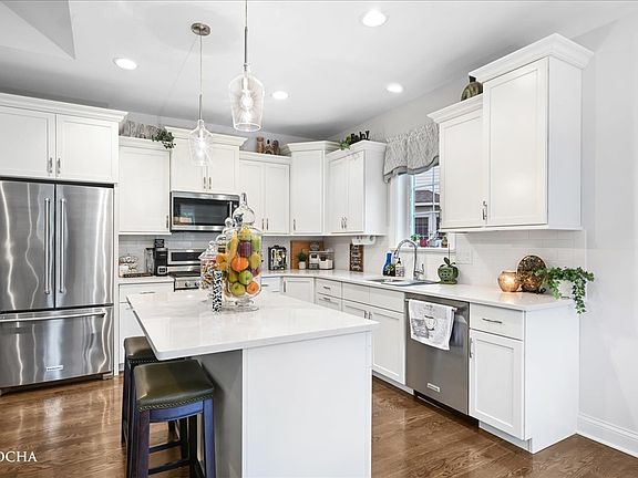 Built in 2020 and beautifully upgraded, this ranch-style townhome offers the perfect blend of comfort, sophistication, and low-maintenance living. Featuring 1,887 sq ft of main floor living space plus a full finished basement, this home boasts four bedrooms (one currently used as a spacious office), three full baths, and countless upgrades that make it truly move-in ready. Inside this stunning ranch, you'll find soaring ceilings and sun-filled windows that create a warm, inviting atmosphere. The open-concept layout features a large family room with a cozy fireplace, seamlessly connected to the gourmet kitchen and eat-in dining area-ideal for both everyday living and entertaining. The kitchen boasts white soft-close cabinetry, quartz countertops, stainless steel appliances, a pantry, and an oversized island with seating. The primary suite is a true retreat with dual walk-in closets, a quartz double vanity, and a walk-in tiled shower, while thoughtful upgrades like USB outlets, a new ceiling fan, and modern lighting bring extra comfort and convenience throughout the home. The newly finished basement is a showstopper, offering a spacious rec room, a wet bar with beverage fridge, a fourth bedroom, and a luxury bath with heated floors and a steam shower. Lighted stair rails create a sleek, modern ambiance, while two storage rooms provide plenty of space for organization. Additional updates include epoxy-floors in the garage, a keyless Schlage front door with storm glass, brand-new window blinds, LED can lighting throughout, a WiFi outlet, and motion-sensor lighting in closets and the laundry room. Situated in a beautifully maintained community, the HOA covers lawn care, snow removal, and exterior maintenance, giving you a truly carefree lifestyle. Don't miss your chance to call 2687 Nicole Circle home, schedule your showing today!