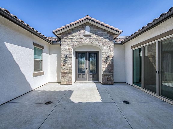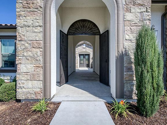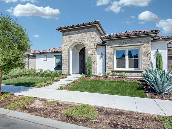 Luxury and lifestyle meet in this stunning single-level Granville Residence 6, perfectly situated in Clovis's prestigious Deauville East community. Offering 4 bedrooms, 3.5 bathrooms, and 4,037 sq ft of living space on an expansive 12,900 sq ft lot, this upgraded Formal Italian elevation blends elegance, comfort, and modern efficiency.Step inside through the grand portico and wrought iron gates into a private courtyard that sets the stage for exceptional living. The interior showcases wood plank tile flooring throughout, a spacious great room with fireplace and custom built-ins, and 9' stackable sliding doors for seamless indoor-outdoor entertaining. The chef's kitchen features an oversized quartz island seating seven, professional-grade stainless steel appliances, double ovens, gas cooktop, dual dishwashers, and a butler's pantry with secondary refrigerator. A brick-accented wine room with built-in racks and fridge welcomes guests in style, while the formal dining room opens directly to the courtyard for elegant entertaining. Designed with flexibility, the single-story floor plan includes a private office/game room and the expansive covered patio creates a seamless extension of the home, offering exceptional outdoor living for memorable gatherings or tranquil relaxation. The luxurious primary suite boasts a spa-like bath with a separate step-in shower, a large soaking tub, dual vanities, and a massive walk-in closet with custom organizer system. The secondary bedroom wing features a private en-suite for guests, while two additional bedrooms are joined by a thoughtfully designed Jack & Jill bath.Additional features include custom window coverings (wood shutters and Hunter Douglas shades), designer lighting and fixtures, a spacious laundry room with abundant storage, and a rare 5-car garage with pass-through bay. Energy efficiency is built in with a 10.23 kW owned solar system to minimize utility costs. The large backyard is a blank canvas, ready for your personal touch.All of this comes with the convenience of being close to Clovis Community Hospital, Freeway 168, and top-rated Clovis schools. This home offers single-level luxury, location, and lifestyle in one exceptional package.