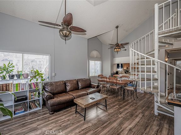 Welcome to this spacious top floor corner townhome is perfect for those looking for a comfortable and open living space. With 3 bedrooms, 2 bathrooms, and a loft, there is plenty of room for everyone. The desirable master suite has an en-suite bathroom, providing the ultimate convenience. The home features designer wood laminate flooring and ceiling fans, as well as vaulted ceilings that make the space feel light and airy. Relax by the cozy fireplace or enjoy the views from the private balcony. The charming kitchen includes stainless steel appliances, ample storage, and a bay window, perfect for cooking and entertaining. Other features include an inside stackable washer and dryer and a two-car tandem garage with plenty of guest parking. The fantastic HOA amenities include five pools, a spa, grassy play areas, tennis courts, and more. The home is conveniently located near shopping, restaurants, schools, public transportation, and more. Experience Santa Clarita living at its best in this beautiful home.