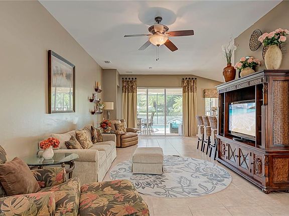 Stunning 3bed 2bath furnished pool home located in SANDOVAL. Cape Coral’s premier resort-style gated community. This immaculate and rarely used residence comes complete with a brand new tile roof and brand new pool cage lanai. This beautiful home shows like a model, has tile flooring throughout, and has an inviting decor. As you enter this well maintained home you’ll be impressed by the vaulted ceilings, open living space, and beautiful view of the pool. The kitchen features impressive granite counters, stainless steel appliances, and has a delightful open design. The spacious master bedroom has a walk-in closet, large master bath with a big shower and dual sinks. Fantastic location close to the tropical oasis style pool complete with waterslide, fitness center, clubhouse, tennis courts and more. This gorgeous home is offered with high-end furniture, and has everything you need to enjoy SW Florida’s Best Lifestyle.