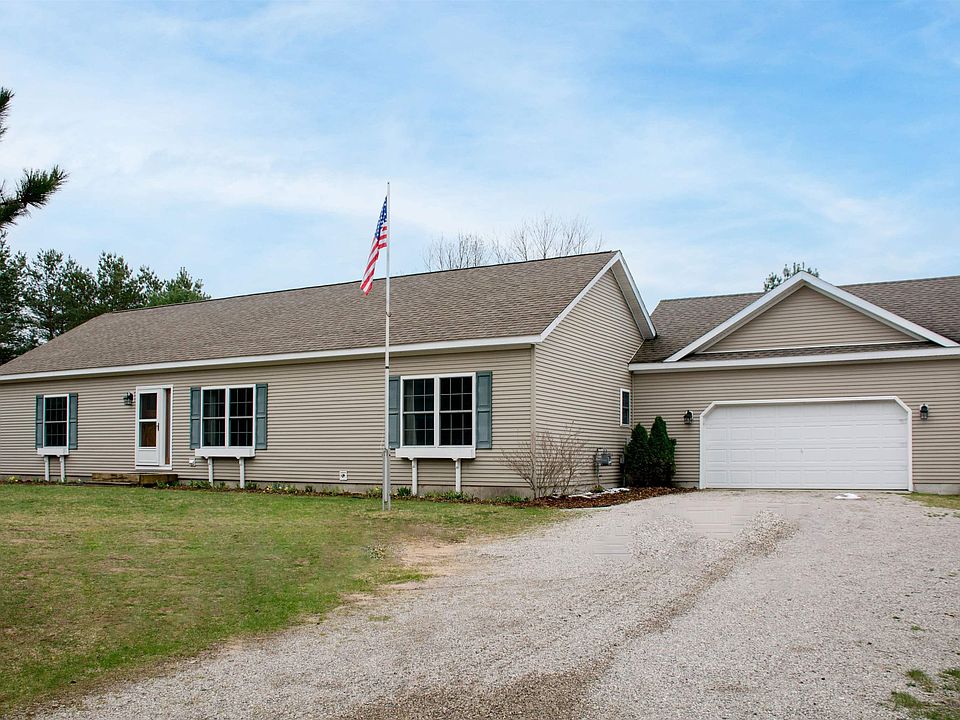 Move-in ready home in the beautiful rural Benzie countryside! Nestled in a wooded subdivision, this home is on a quiet cul-de-sac. Meticulously kept, the main floor features tasteful updates, hardwood floors, cozy living room with bright picture windows and bookshelf built-ins, primary with en-suite, many spacious closets, and mudroom/laundry hallway with a pantry. Entertain in ease in the breezy island kitchen with newer appliances, formal dining area, and walkout deck with metal canopy. There is plenty of space for family and friends in the fully finished lower level - complete with wet bar, riverstone fireplace, built-in 110 gallon aquarium, and ample room for extra beds and storage. There are tons of special touches including custom hidden shelving, wrought iron door and stainless glass from a historic Detroit restaurant, and stones from Pt. Betsie tiled in the shower. The exterior features tasteful perennial landscaping including raspberries, blueberry, and asparagus; an established, irrigated vegetable garden, and large chicken coop. Conveniently located only 30 minutes from all the amenities of Traverse City, and only 10 minutes from Interlochen - home of the coveted Interlochen Center for the Arts. A must see!