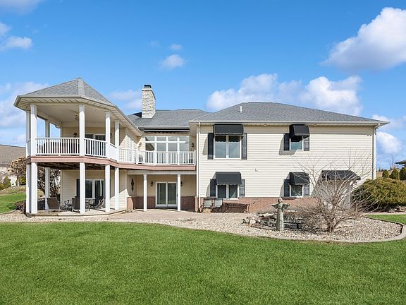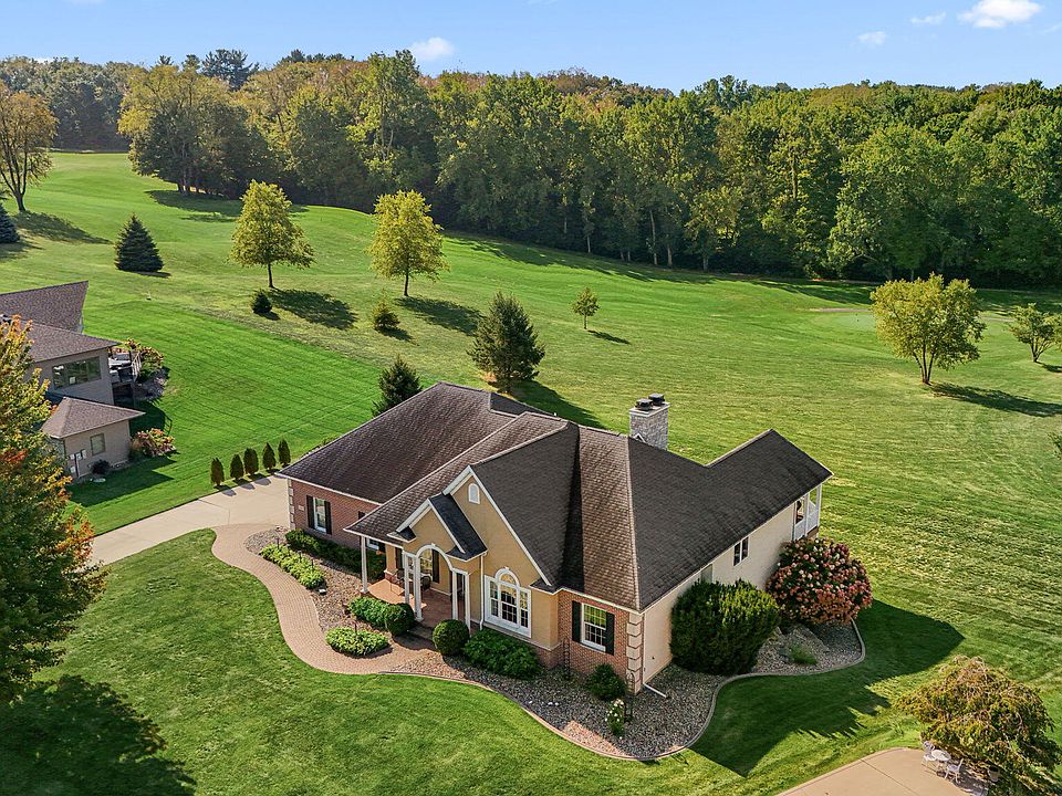 Discover gracious golf course living in this beautifully appointed 5br/3ba home in desirable Legacy Estates community! Natural light fills the main level living area, which has a coffered ceiling, cozy fireplace, hardwood floors and views over the golf course. Stunning, eat-in gourmet kitchen is ideal for entertaining with a 6-burner stove, granite counters, stainless appliances and a sunny dining nook that opens to a balcony deck. Main level primary suite with luxurious bath. Finished lower level offers a generous second living area with a stone-trimmed fireplace and sliding doors out to a patio overlooking the back yard and golf course. A wet bar with a second fridge and a lower level bedroom make this great guest space! This is a move-in ready home with attached 3-car garage, large yard, and lovely golf course views in a great location close to shopping, bike/walking trails, and just minutes from Pine Lake!