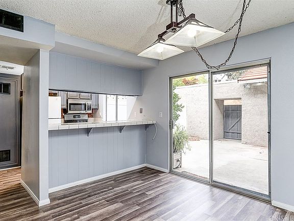 No Mello Roos and FHA spot LOAN allowed! This wonderful 3+3 townhome with no one above or below you has a very private patio between the garage and sliding door from large family/eating room off the kitchen. Complete interior painted late 2019! New downstairs flooring installed late 2019! Carpet professionally cleaned upstairs late 2019! Newer vanity and shower door in Master Bathroom off large Master Bedroom. Master Bedroom has TWO closets! Newer faucet in guest bathroom + more. Washer, Dryer and Refrigerator included! Lovely fireplace in the living room. Close to the HOA tot yard. Well kept HOA grounds, basketball court, and HOA pool included in HOA dues. One car garage and 1 carport steps away from each other! Average price of townhomes in Santa Clarita are $415,000 so this won't last long!