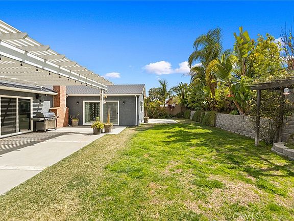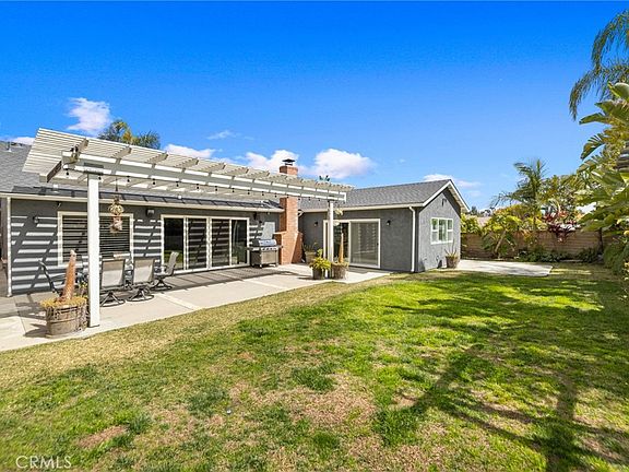 Featuring custom updates throughout, a brand new primary bedroom addition and Lake Mission Viejo membership privileges, this stunning 3 bedroom, 2 bathroom, single-level home is not only turnkey, it’s also located in one of Mission Viejo’s most sought-after neighborhoods. Enter through the custom-built Dutch door opening to an extra-wide entry. The open concept redesign of the main living space features gorgeous wide plank oak wood flooring, custom designed stacked-stone fireplace with vintage floating oak mantle, new LED recessed lighting, new windows with wood shutters, new sliding door and flush mount surround sound speakers. The expertly designed chef’s kitchen boasts an oversized White Carrera marble island, custom soft-close cabinetry, Black Absolute Granite countertops, 36” Dacor gas range with Monogram hood vent, Sharp microwave drawer, farm sink, and modern subway tile backsplash. The brand new primary bedroom addition adds 315 sq ft of living space to the original plan. This thoughtfully built addition boasts a vaulted ceiling creating an open and airy retreat, with additional custom storage, ceiling fan, recessed lighting, new sliding door and new windows with custom wood shutters. The newly built, attached primary bathroom en-suite features statement floor-to-ceiling tile, large walk-in shower, freestanding soaking tub, vertical grain white oak vanity with dual sinks and quartz counter, and a walk-in closet. Two additional well-sized bedrooms with fans and new paint. The renovated hall bathroom features a new tub with statement subway tile, custom vanity with quartz counter and new hardware throughout. Enjoy the spacious backyard, featuring a large grassy area, avocado and lemon trees, updated landscaping, spacious concrete pad with patio cover, gas line for BBQ, and new drainage and irrigation. The list of additional upgrades is extensive: new roof with additional ventilation (2021), 5-ton HVAC (2021), tankless water heater (2021), rain gutters (2021), electrical replaced with 200 amp panel (2015), new wiring in kitchen and living room (2015), complete plumbing repipe to pex (2015) and epoxy floors and a Lift Master motor in the garage (2015). Enjoy Lake membership privileges which include access to 2 beaches, boating, water sports, concert series, movie nights, picnic areas, playground, snack bar and clubhouse. Just a brief stroll to Christopher Park, within a top-rated school district, and centrally located to golf courses and fine dining.