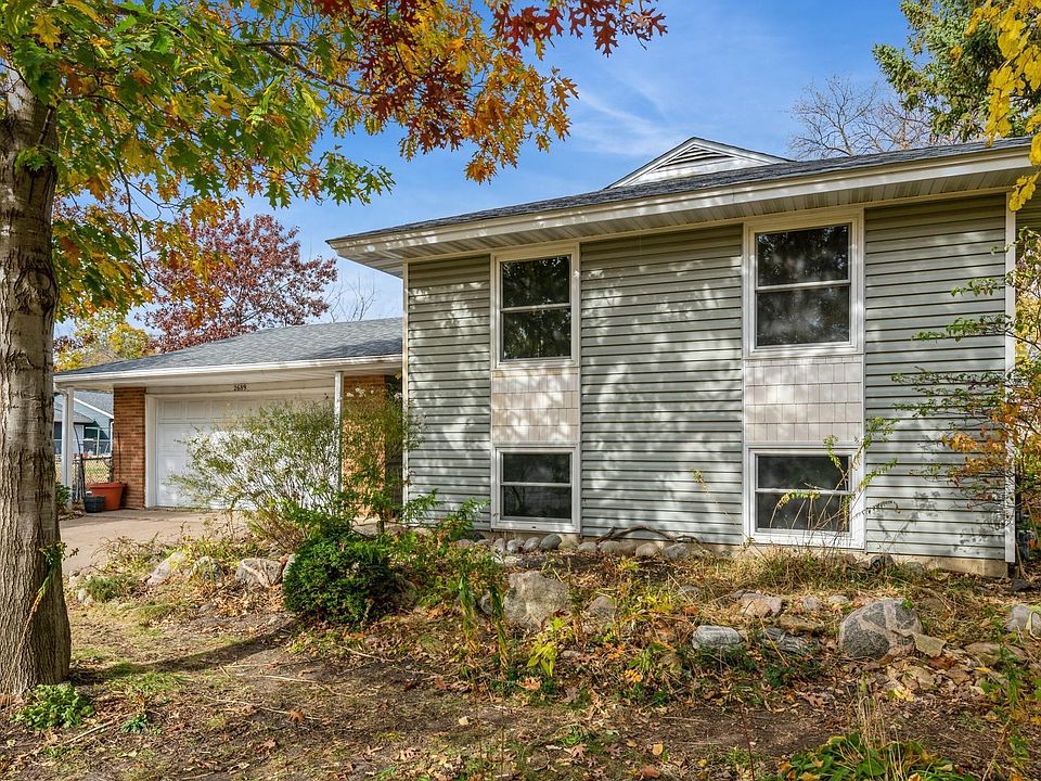 For the 1st time on the market after being built in 1965 this spacious split-level home is ready for its next chapter. Just blocks from the Mississippi Trails. This original-owner property boasts a large great room with vaulted tongue and groove ceiling highlighting a brick gas fireplace. The great room walks out to the bright four-season porch. This is the perfect place to read or cultivate your indoor plants. The spacious kitchen was updated in 2010 with Oak cabinets and a lot of countertop space perfect for meal prep or baking. Under the carpet in the living room and bedrooms upstairs you will find original Oak hard wood floors. The lower level includes a spacious family room and bedroom with daylight windows. There is also the potential to add on square footage by finishing the storage areas and 4th bedroom. While the home may need some cosmetic updates the price reflects the potential for customization. With plenty of living space and additional space to finish the possibilities are endless. With the newer (2018) furnace, AC, Siding & Roof and Water Heater (2024), your focus can be on other spaces within this home. 1 year HSA Home Warranty ($575) provided by seller at closing.