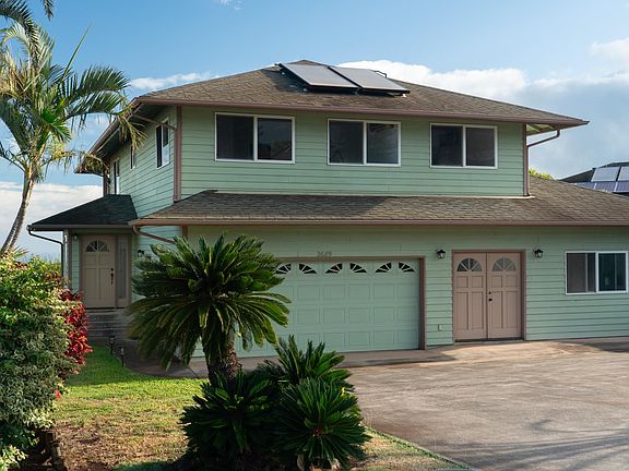 Nestled at the end of a peaceful cul-de-sac in the desirable Pukalani Terrace & Country Club neighborhood, 2689 Palalani Pl. offers a serene retreat with unparalleled bi-coastal ocean views. This two-story home features 3 bedrooms, 3.5 baths, and 1,896 sq ft of recently refreshed living space, including new tile and durable engineered wood flooring, fresh interior paint, and new ceiling fans and light fixtures. The open floor plan is highlighted by tall ceilings and abundant natural light from expansive windows, encompassing a spacious kitchen with an extended island perfect for entertaining. Savor the sunrises and sunsets from the generous covered lanais on both levels, ideal for barbecuing or simply soaking in the panoramic views. The primary and guest bedrooms boast Haleakala Mountain views, while the downstairs bedroom offers its own ocean outlook. An additional 480 sq ft of air-conditioned flex space, equipped with multiple 220 power outlets and a permitted half bathroom, can be tailored to suit a wood shop, art studio, or home gym. Conveniently located close to the Pukalani Golf Course, Pukalani Elementary School, grocery store, community center, restaurants, and just a 15-minute drive to Kahului, this home offers the perfect blend of privacy and accessibility for those seeking the idyllic Maui Upcountry lifestyle.