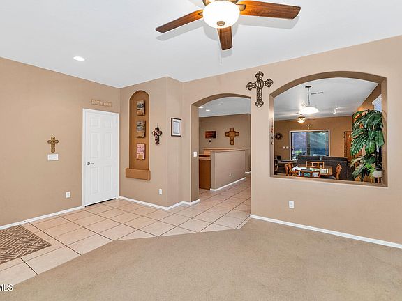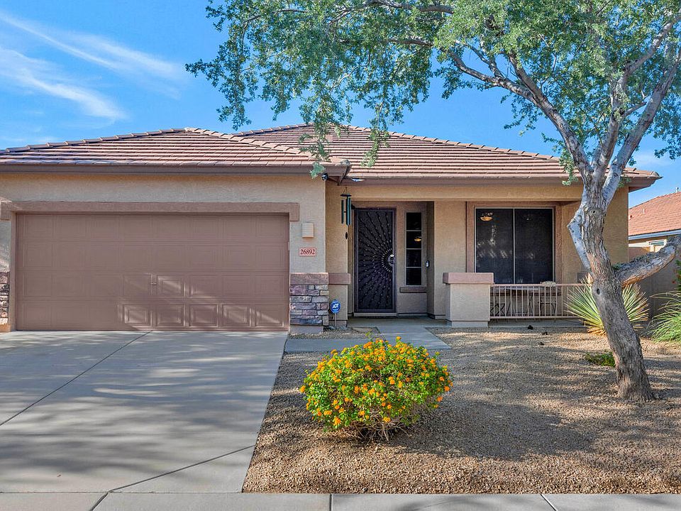 Welcome to the desirable Westwing Mountain community! This single-level 4-bedroom, 2-bathroom home is perfectly situated within walking distance to top-rated schools and surrounded by stunning mountain views. Enjoy a bright and open kitchen with a large island and electric appliances, ideal for gathering with family and friends. The primary suite features a beautifully tiled walk-in shower, separate soaking tub, dual sinks & walk-in closet. Recent updates include a newer HVAC (2023) and hot water heater (2021). Step outside to a covered patio overlooking the freshly turfed backyard—perfect for relaxing and entertaining. Westwing offers walking and biking trails, nearby Paloma Park, Lake Pleasant shopping, and easy access to all the amenities of city living within a serene desert setting.