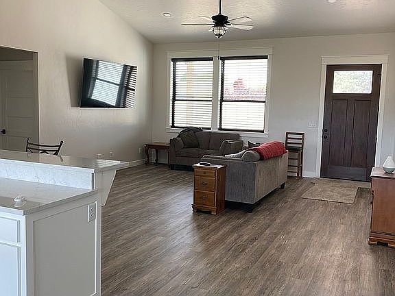 Beautiful, single level, custom home on 1.75 acres Finished in March 2022 No HO Association 3 bedrooms 2 1/2 baths Vaulted ceilings and open floor plan 9’ ceilings Custom built-in cabinetry throughout Custom window blinds in bedrooms and living room Walk in pantry Half bath in laundry Quartz countertops in kitchen and bathrooms Tile backsplash LVP flooring in living areas, carpet in bedrooms Covered front porch and covered back patio Oversized 2 car, attached garage Finished, insulated garage with 8’ x 18’ door Storage shed with water and power 375 gallon propane tank Wood stove Propane range and hot water heater Propane plumbed on back patio for grill Well and septic system Well pressure tank in garage