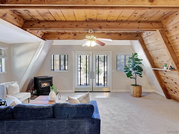 This is one of the most interesting homes I have had the privileged to represent.  The home is an A frame in beautiful Guatay which is on a lot zoned for multiple units which will make it easy to add an ADU.  There is a small building which I think was the original house that my client used as a gym.  That building has electricity but no water of septic which could be added to make it into a studio apartment. Behind that is a work shop.  Now for the home,  The home is an A frame with original wood walls a spacious kitchen with granite counter tops and 4 bedrooms. The carpet and paint is new. You will not find a nicer country home.