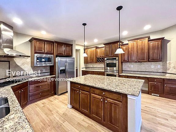 The heart of the home is the chef-inspired kitchen, fully equipped with a refrigerator, stove, microwave, double oven, dishwasher, garbage disposal, and a massive center island with accent lighting. A spacious walk-in pantry and a butler's pantry just off the kitchen ensure both style and functionality.