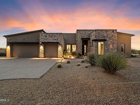 Set against the dramatic backdrop of Troon Mountain, this 4,309 sq ft home offers an inspired fusion of contemporary luxury and desert serenity within the exclusive gates of Boulder Ranch. Sale to include adjacent 1.7 Acre NO HOA parcel, totaling 3.15 Acres of desert serenity - offering unobstructed views of Troon Mountain and sweeping vistas to the North. A true dual primary floor plan, each primary suite features a spa-like bathroom, while the attached casita is ideal for guests. Perfect for seamless indoor-outdoor entertaining, the open-concept kitchen flows into the expansive great room, opening to a stunning backyard oasis - with heated pool and spa, fire feature, and misting system. Proximity to world-class dining, shopping, golf, and outdoor recreation. Inquire today!
