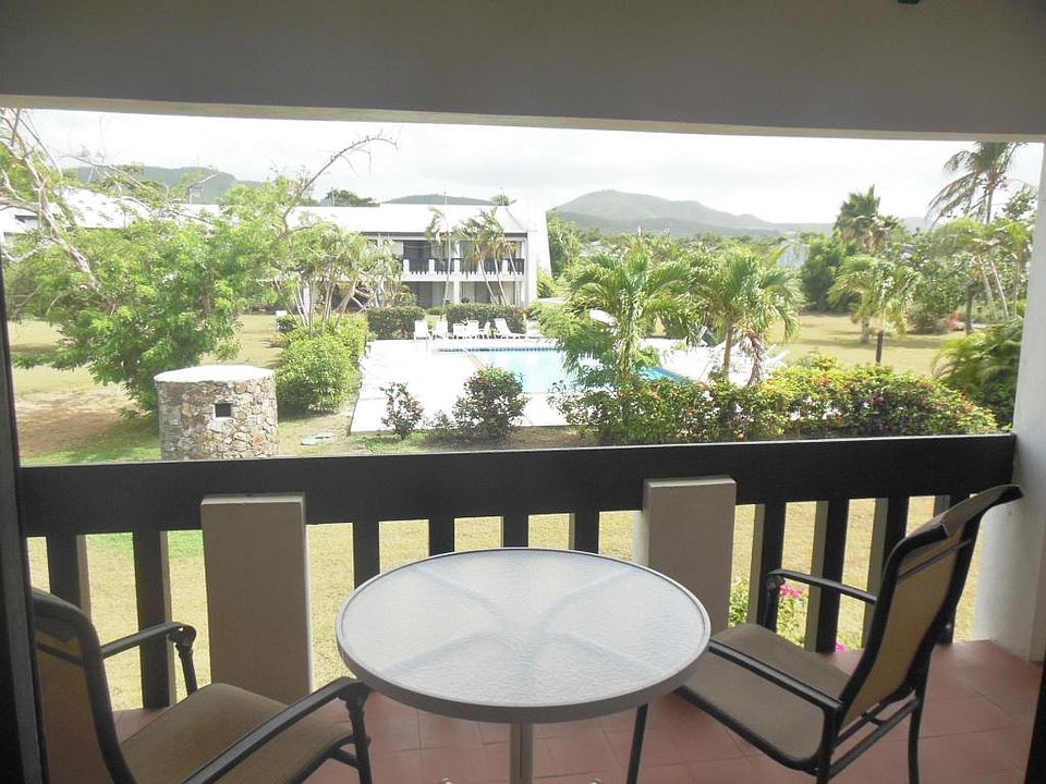 This condo resides in a small oasis of only 42 units, overlooking the pool. Boasting high ceilings, spacious bedroom, lovely outdoor gallery, low monthly fees, and in move in condition. Great starter home or fantastic rental potential. Property includes automatic generator, solar panels for hot water heater, gated entry, and easy breezy laundry room. New split AC in the bedroom, lots of storage, close to beaches and Frederiksted town. This is an all around favorite.