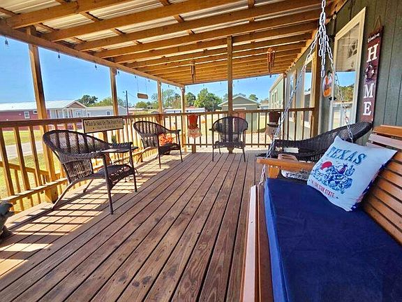 This charming 2-bedroom, 2-bathroom home, built in 2022, offers 1,326 square feet of modern living space. Constructed with durable Hardy board siding, the property features a large deck. Inside, you’ll find solid oak cabinets in the kitchen and bathrooms, along with a functional kitchen island. All appliances are included, making this home move-in ready. Elegant crown molding and luxury vinyl plank flooring flow throughout the home, adding a touch of sophistication. Built on 14 sturdy concrete pillars, the home ensures stability and longevity. Additional features include a carport, an outdoor storage unit, and a smoke-free, pet-free environment. As a valued member of Holiday Villages, you’ll enjoy a vibrant atmosphere with engaging monthly potlucks, thrilling bingo nights, and enriching paint classes. The extensive list of amenities includes common fishing piers for serene moments by the water, boat ramps for easy access to Lake Fork, a welcoming clubhouse, and a refreshing saltwater pool for relaxation. For those who enjoy an active lifestyle, the community also offers playgrounds for the young ones, a basketball court, and picnic areas for outdoor gatherings. Please note that a monthly HOA fee of $52 applies to ensure the continued maintenance of the community’s exceptional facilities. Well water filtration and sewer services are available for $65 each per month, plus the cost of usage. Seize this remarkable opportunity to embrace the Lake Fork lifestyle within this vibrant community. Your vision for a peaceful lakeside retreat can become a reality here.