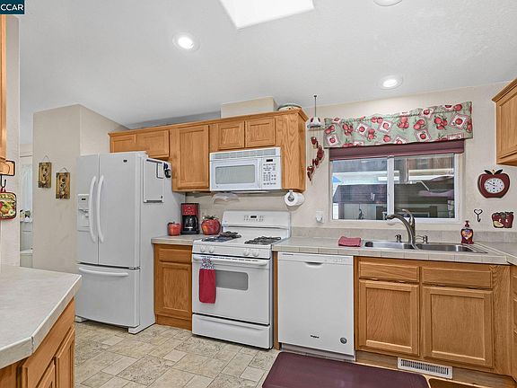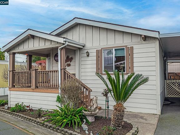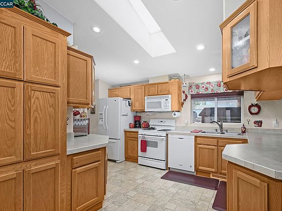 Welcome to your Skyline Homes beauty in Concord Cascade! This 2006 built three-bedroom, two-bath manufactured home boasts an exceptional layout with abundant natural light via multiple skylights and a seamless flow. The spacious living room features a wood-burning fireplace, perfect for cozy gatherings, and tons of room for every day and entertaining. In the kitchen, discover conveniences like a gas range, built-in microwave, ample counter space and lots of storage enhancing your culinary experience. The large primary suite offers a tranquil sanctuary, easily accommodating a king bed and featuring a luxurious jetted tub and separate shower for ultimate relaxation. Fenced rear yard offers storage, orange and lemon fruit trees, patio and easy care features. Plus, enjoy access to the community's amenities, including a clubhouse and swimming pools, elevating your everyday living experience.