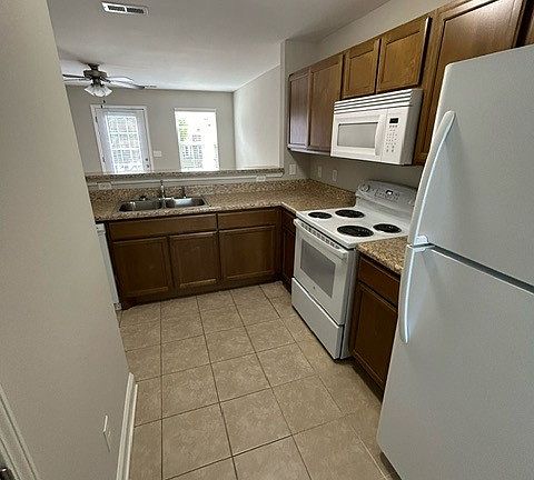 This is a large townhouse close to shopping and the interstate. This unit has 2 bedrooms and 2.5 bathrooms with a porch and large private patio. The community has sidewalks and backs up to a park. The unit has ceiling fans, a garden tub, a stove, dishwasher, fridge with icemaker, microwave and garbage disposal. Your unit has two assigned parking spots and washer dryer connections. Right now we are offering half off the regular security deposit making it $875.