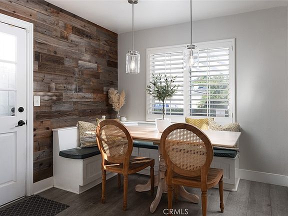 Framed by a charming white picket fence, mature olive tree, and an inviting shaded front porch with swing, the home exudes timeless curb appeal. Step inside through the Dutch door to discover a bright, open-concept layout designed for modern living. The kitchen showcases custom built-in banquette seating, quartz countertops, shaker cabinetry, farmhouse sink, and stainless steel appliances—perfectly blending style and function.