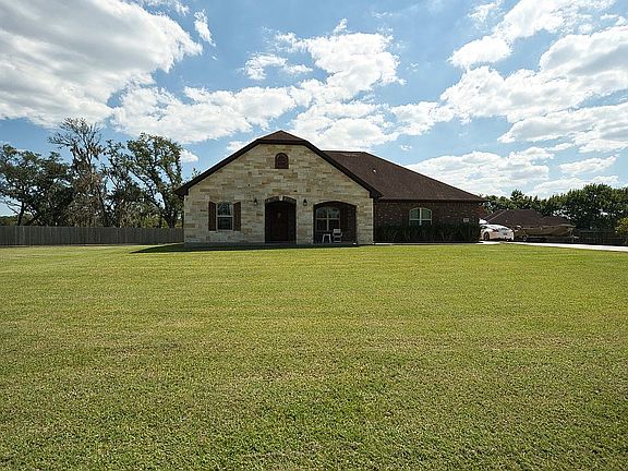 Parking is a single-car plus-sized attached garage and the long double-wide driveway. Architectural plans exist for a custom car port that matches the house (the stone/bricks for construction are on the property). Outside features a large front porch, expansive back patio with large covered back porch and lots of grass to play, add a pool, and/or construct extra buildings. Sewer is an anaerobic septic system, and water is from a community well. Quiet area with nice neighbors and no HOA. About 4 miles to Lake Jackson, 3 miles to Angleton, has quick access to TX288, and is only 19 minutes from Surfside Beach. This property has never flooded. Assumable 5.625% FHA loan.