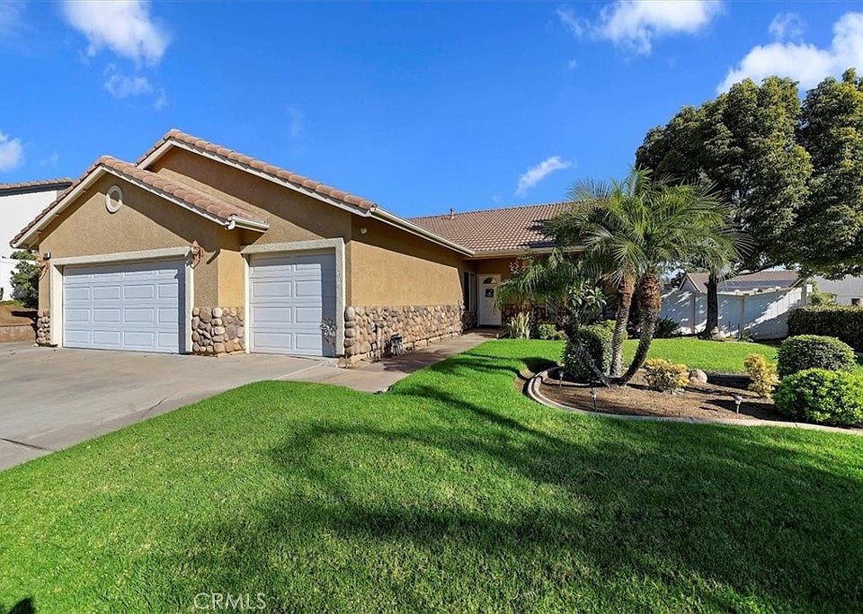This is a must see beautiful single-story home that features 4 bedrooms 3 bathrooms. Open spacious floor plan, oversized living room, large dining area with a fireplace, kitchen with granite counter tops, center island, and a breakfast bar. Spacious guest bedroom with a private full bathroom. Bright and airy master bedroom with a private ensuite, and double sinks. Indoor laundry room with a sink. Backyard features mature grass and 2 alumawood patio covers that are great for entertaining. 3 car garage with direct access. Long concrete driveway with ample amount of parking. Great curb appeal. Easy access to the freeways.