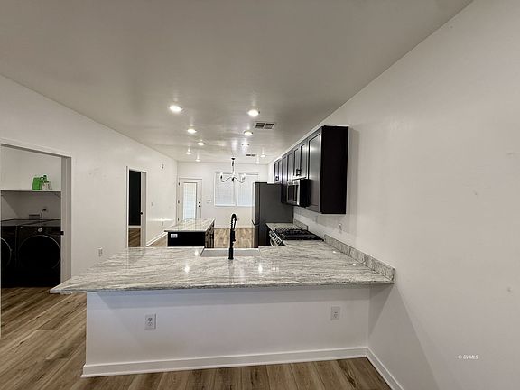 Modern build with Mountain Views: Discover modern comfort in this beautifully designed newer build, showcasing LVP flooring throughout and a fresh, contemporary color palette. The spacious open great room flows seamlessly into a stylish kitchen complete with granite counter tops throughout the entire home and stainless steel appliances, perfect for everyday living and entertaining.The private principal bedroom offers a relaxing retreat with its spa-like en-suite, featuring double vanities and a large walk-in closet. Guests will also appreciate the well-appointed hall bathroom, which includes its own double vanity and granite counter tops. Step outside to a fully fenced backyard with a block wall, ideal for privacy, pets, or play. Enjoy outdoor living year-round on the covered back patio with warm wood accents, all while taking in stunning mountain views. Additional highlights include beautiful wood beams on the front porch, convenient RV gate access into the backyard, and a striking front door that sets the tone for the entire home. Located in a quiet neighborhood yet just minutes from town, this property offers the perfect blend of tranquility and accessibility. Move-in ready and thoughtfully upgraded.