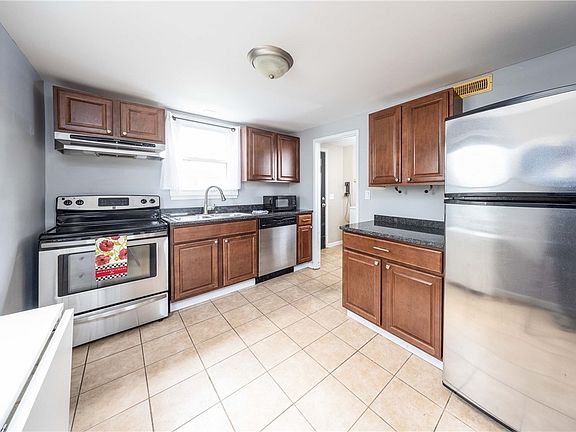 You will love the charm of this 4 bed/2 Full bath Cape Cod nestled in Laurelton subdivision of Irondequoit. It Boasts Newer Vinyl Siding & 2 bed/full bath on 1st floor, 2 bed/full bath on 2nd floor. Hardwoods downstairs, granite counter tops, Stainless Steel appliances, (Stove, Refrigerator & Dishwasher) Cherry kitchen cabinets, Vinyl replacement windows. Kitchen window looks out over Fully Fenced back yard/patio & firepit. Spacious primary bedroom overlooks backyard & has custom shelving inside walk-in closet. 2nd upstairs bedroom also overlooks backyard & has a good-sized closet. Second floor has walk in attic storage. First floor laundry - Washer/Dryer included. "Mud room" provides easy access to backyard for people & pets alike. Also has utility closet/pantry. Cabinets can be mounted over Washer/Dryer & be used as additional storage & Pantry space. Shed will come in handy to store your things. Sidewalks make it easy to get to nearby famous local ice cream store. You will love it! Not far from Expressway, Farmers market, Restaurants & shopping. Viewings commence Thursday 2/29/24 at 10:00AM. OPEN HOUSE on Sunday 3/3/24 from 12-3PM. Bids to presented after 6:00PM Monday 3/4/24.