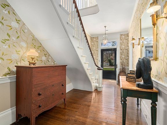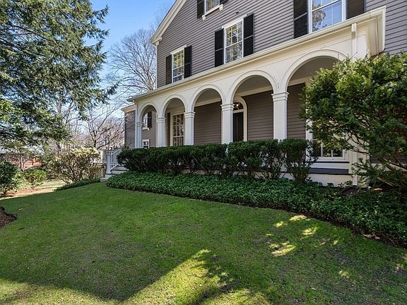 Exuding timeless elegance, this stately Greek-Revival Colonial sits gracefully on a .78-acre level lot on Newton's Farlow and Kenrick Parks Historic District. Discover a spectacular interior featuring high ceilings, an abundance of natural light, and meticulously preserved details, including hardwood floors and floor to ceiling windows. The first level offers a grand entry, spacious living and dining rooms, and an eat-in kitchen where you walk out to an expansive deck overlooking stunning grounds. The 2nd level includes 4 generous bedrooms and a sun drenched studio/family room with another great view of the sprawling backyard, and an office. The 3rd level hosts 2 additional bedrooms, and a bonus room providing flexibility for extended family, playroom, or whatever suits your needs. A circular driveway, and plenty of off-street parking, this distinguished residence is ideally situated near prestigious schools, parks, the Masspike, Boston and Cambridge.