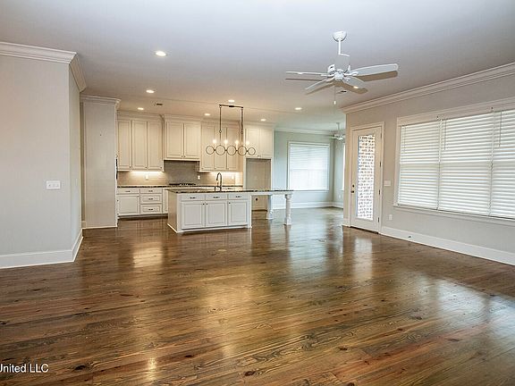 Beautiful Home! Conveniently Located in the up and growing Town of Gluckstadt! This gorgeous 4 bedroom, 3 bathroom home is ready for new owners and is located near great local schools. Pride of ownership is evident. This home was masterfully constructed with the highest quality materials and finishes. The open floor plan lets in lots of natural light and features gorgeous wood floors and granite counters throughout. The family room is accented by a fireplace with built-ins on both sides and a fantastic view of the covered patio. The kitchen is incredible, highlighted by a huge island with sink and tons of bar seating, as well as a large pantry. It is also bordered by an excellent breakfast/sitting area boasting a wall of windows. The owner's suite is off the back side of the family room, with trey ceiling, separate vanities, a huge walk-in closet and gorgeous separate shower. Off the other side of the family room are 2 additional bedrooms with a guest accessible bath and hallway closet. The remaining bedroom and bathroom is off the kitchen, along with laundry room with utility sink. 3 car garage with storage room and a tankless water heater. Sprinkler system. Large porch and patio area. Very private backyard. This 1 owner home has been well maintained. Better than new!