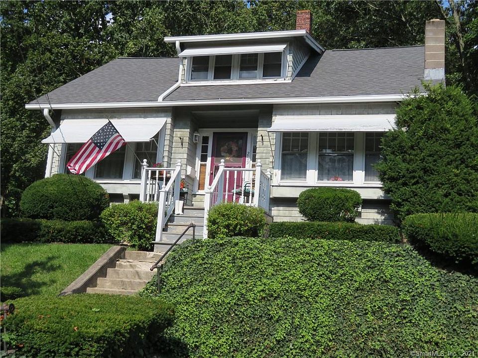 Charming bungalow with new roof. 1st floor master bedroom. 2 bedrooms plus den on 2nd floor. Kitchen has new appliances, breakfast bar and ceiling fan. One full bath on first floor. Tiled kitchen floor needs work.