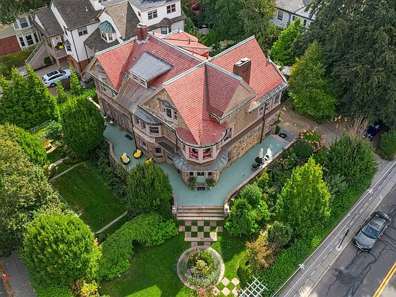 Grand Queen Anne Victorian Home, formerly of the Weber Estate, nestled in a meticulously appointed British Garden with nearby urban and natural amenities. Through an expansive entertainment hall with comfortable living and dining rooms, you are guided through the home by stained glass windows of the most intriguing colors and shapes to create a jeweled ribbon up the main staircase to the family rooms. The amount of original detailing maintained over the course of the generations offers clear personalization of timeless designs, while allowing for the introduction of modern amenities. A prominent exposure floods the house with light and delight all day. The outdoor grounds are reflective of a curated effort to do justice to such a period estate from spring flowering beds and sitting patios that usher a summer of full and mature trees accompanying dahlias, delphiniums and hollyhocks and vegetable patches to make room for perennials and create a wonderful private park.