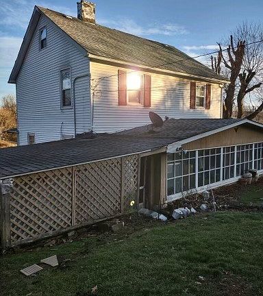 Same family owned since early 1940s. This is a very spacious 2-story home. It has a large covered front porch, a large side porch and enclosed sunroom addition off the back. Wonderful yard. The living room is humungous. Separate dining room. Equipped kitchen. Updated windows approx 2008. The gas furnace is approx 1 or 2 years old. sump pump 2004. electrical updates 2008 and added heat to sunroom addition. The upstairs bathroom is gigantic. Three spacious bedrooms. Low traffic and quiet area.