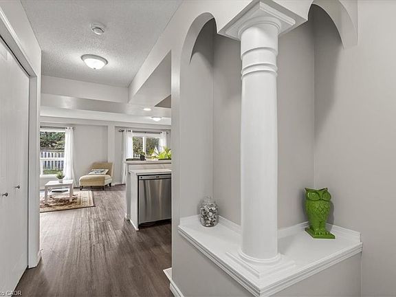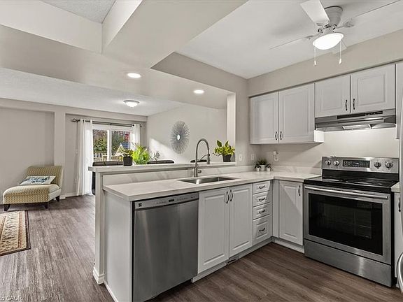 Modern Living in Prime Hespeler! Welcome home to 269 McMeeken Drive, a beautiful freehold townhouse nestled in one of Cambridge's most desirable and family-friendly neighborhoods. This home isn't just move-in ready—it's completely rejuvenated, saving you the time and expense of renovations! Step inside to discover a bright, cohesive space defined by brand-new luxury vinyl plank flooring that flows seamlessly across every level. The entire home has been freshly painted in a contemporary, neutral palette, making it the perfect canvas for your personal style. Key Upgrades You'll Love: Kitchen: The heart of the home boasts new, durable quartz countertops that pair perfectly with the cabinetry, offering ample space for cooking and entertaining. Bathrooms: All bathrooms have been elevated with brand-new vanities and matching quartz countertops, creating a fresh, luxurious feel. Future Potential: The lower level offers incredible value with an unfinished basement that is already partially framed and includes a useful fruit cellar space. This area is primed and ready to be customized into a future rec room, home office, or gym—a perfect investment opportunity! The garage has direct access to the basement, so an in-law or duplex opportunity exists. Located close to schools, trails, parks, and easy access to Highway 401 for commuters. This truly is a home-run opportunity in a fantastic Hespeler location.