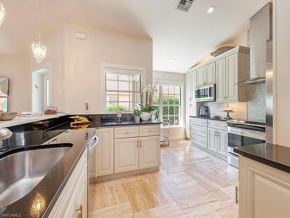 V.2940 -Complete transformation. (UPDATE & IMPROVEMENT LIST ATTACHED) Some of the many upgrades and updates include VOLUME ceilings, a gourmet kitchen complete with top of the line appliances, new baseboards,crown molding, window casing, solid hardwood doors and custom window treatments throughout. Open concept living space. Polished travertine flooring in the main living areas and master bedroom and engineered hardwood flooring in the additional bedrooms New Carrara marble master bath and large master closet.The Vineyards is a gated Golf Course Community located in North Naples and offers optional golf and or social memberships. 36 hole Championship Golf, NEW spa & wellness center, 12 Har-Tru Tennis Courts and Resort Style Pool & Spa are some of the many amenities. Fiber Optic Integration to support High Definition TV, Next Generation Internet and Carrier Class Telephone are included in the Quarterly fees!