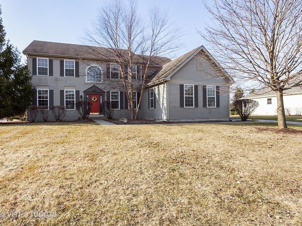 Room to roam in this 3244 square feet beauty in move-in condition. Enjoy a half acre lot, 3 car sideload garage, and deep pour basement. The gourmet kitchen with brand new stainless steel appliances, a large breakfast island, dinette and door to patio opens to the dramatic 2 story family room with hardwood and fireplace. The first floor also offers a roomy office and adjacent full bathroom ideal for those who need a bedroom on the main floor. The large laundry/mud room connects to garage. Upstairs, you will find a spacious master with walk-in closet. The luxury master bath has double vanity, whirlpool, separate shower and enclosed toilet room. Do not miss the 3 additional, generous sized bedrooms with large closets. Fresh paint and new carpets throughout, convenient location to the Commons and all that Geneva has to offer: Metra, shopping, parks and schools. This gem is waiting for you!