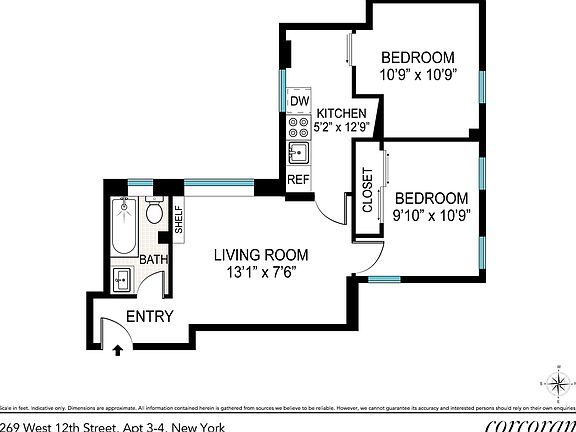 This is a 2 bedroom, 1.0 bathroom, multi family home. This home is located at 269 W 12th St APT 34, New York, NY 10014.