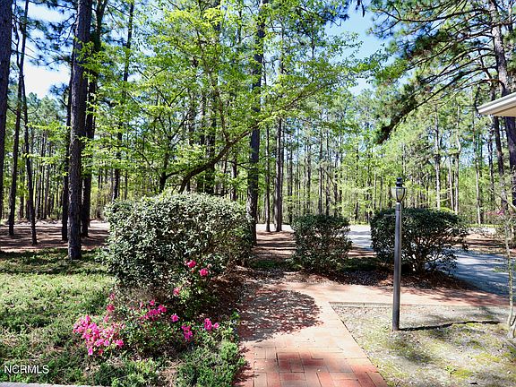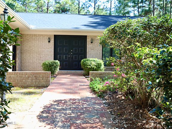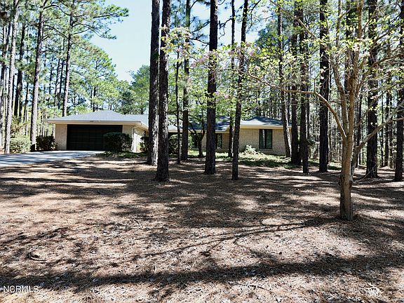 This Mid Century Modern vibe is just waiting for your personal touches! Over 2600 + sq. ft.,- Single Level! Split BR plan works beautifully for a variety of living needs with spacious rooms and built ins! You'll love the natural setting surrounding Warrior Woods in Southern Pines NC, one of the original subdivisions with mature trees and an abundance of native wildlife. Over 1/2 Acre to enjoy. A courtyard entry greets your guests as they enter the home. Lovely formal LR opens to a formal DR with crown molding accents. Formal LR includes a wet bar with quick access to kitchen, perfect for large gatherings. Handsome wood paneled walls frame the cozy Den. Enjoy the warmth of a Wood Burning Fireplace! Great home for entertaining with rooms flowing to a 4 Season enclosed Sun Porch. Exterior Brick and Paver patios offer additional outdoor entertaining space. Natural light floods Carolina Room just steps from galley style kitchen. Tons of cabinetry and counter space found in this practical kitchen including 2 pantries and additional storage closets. Convenient half bath is attached to separate laundry room and convenient to kitchen and two car attached garage. Master BR wing offers a tremendous sized BR Suite and walk in closet with separate on-suite bath. Home's exterior is beautifully surrounded by an array of native trees and shrubs. Enjoy all the conveniences to parks, schools, Moore County Municipal Airport & neighboring communities of Whispering Pines, Pinehurst & Carthage . NO HOA! Southern Pines Municipality Public Water/Sewer.