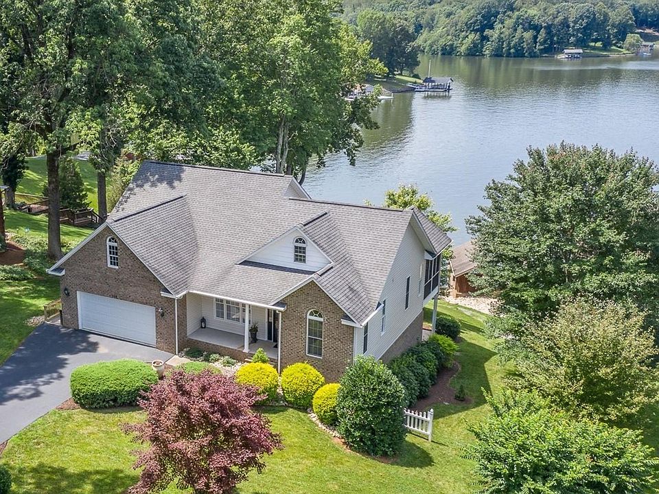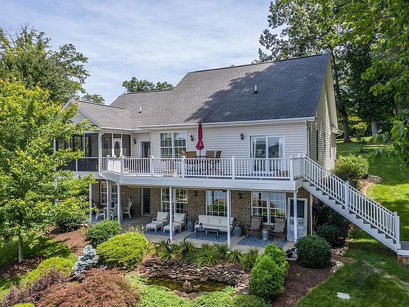 Fabulous lake views. Impeccable Single Level Living L/F home designed for entertaining. 4 BR, 3 BA, 2,966 sq. ft. E/L features an open floor plan, windows that captures the wide water lake views, living room, eat-in kitchen, dining area, kitchen w/granite C/T & SS appl., master suite that leads out to the deck, laundry, 2 BR, BA & 2 car garage. Screened porch, spacious decking w/steps. L/L features an open family & rec room w/a gas F/P, kitchen, BR,BA, workshop/craft room,& storage. L/L is perfect for in-law suite! Gorgeous outdoor living w/expansive decking & patio, storage building /workshop, pergola,tranquil waterfall, boathouse, Jet Ski port, boat lift, lawn w/lovely landscaping. Landscape path lighting, gentle slope to dock, irrigation pump,& deep W/F,perfect for all water activities.