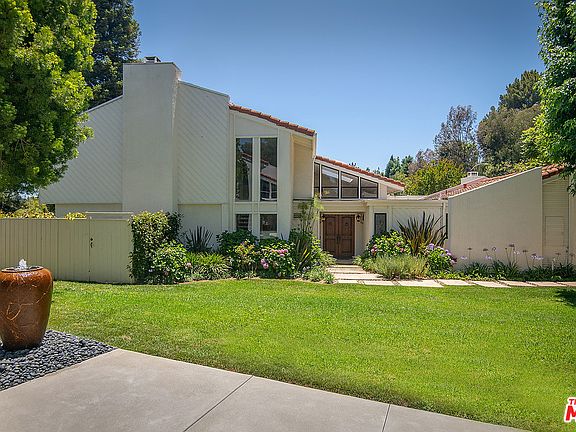 Stunning 2 BR & Den end unit "A" plan townhome in Bel Air Ridge offered FULLY FURNISHED by a designer! Double door entry into an open floorplan featuring skylit atrium room, center island chef's kitchen, living room with fireplace, dining room and den with fireplace. All with french doors that open to a lushly landscaped brick patio perfect for entertaining with lush canyon views!!! Spectacular master suite with custom walk-in closet, soaring ceiling, spa-like bath facing serene tree-top and canyon views. 2nd BR suite completes the upstairs. Direct access from garage, laundry room. Amenities include clubhouse, tennis, fitness center, pools, spa, 224 hr security patrol. Roscomare School District.  Easy to show! Fall in love!