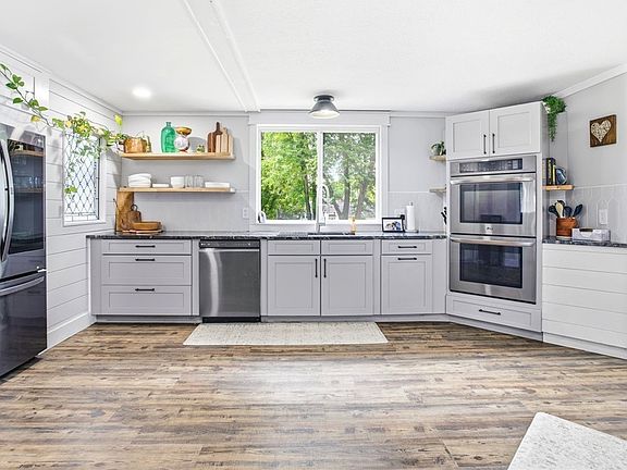 Welcome to 2690 Crompton St NE – Plain Local Schools! Step into this beautifully updated 1970s brick ranch offering over 3,000 square feet of charm, character, and modern comfort. The open floorplan creates an inviting space perfect for gatherings with family and friends. The remodeled kitchen features a large butcher block island with seating, stainless steel appliances, and a hidden butler’s pantry with extra cabinetry and countertop space for storage and prep. The adjoining living room is anchored by a striking German-smeared brick gas fireplace—visible from the kitchen, making it ideal for entertaining or cozy nights in. A bright family room and a convenient half bath complete the shared living areas.