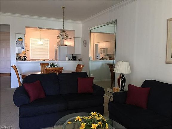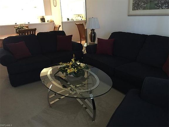 This unit is the one to buy with a newer A.C. unit and hot water tank which saves you money up front! Totally furnished and ready for a year rounder, part timer or investor. Master bedroom has a king sized bed and second bedroom has a King sized bed that could convert to two twin beds. And the view is awesome. Sit on your enclosed lanai and watch the golfers hit their approach shot and putt on the green. This unit has a close parking space and close to the elevator. Cypress Woods offers a clubhouse, 18 holes of a fun golf course, driving range practice area, bocce courts, tennis courts, pickle ball, fitness center, card rooms, full restaurant and grill room. Lifestyle is fabulous. Come see this inexpensive unit with the lowest cost in Naples for a bundled golf community.