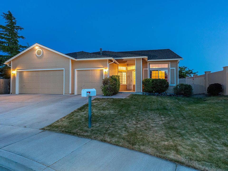 Enjoy city lights and watch the fireworks from the private backyard of this beautiful home! Upgrades include rich wood flooring and a huge paver patio, perfect for summer BBQ's! The spacious master bedroom includes a bonus retreat, which could be used as a nursery, home gym or office. Oversized three car garage offers plenty of space for vehicles and recreational equipment. Great location close to the neighborhood park with easy freeway access and just a short drive to UNR. Freshly painted, move-in ready!