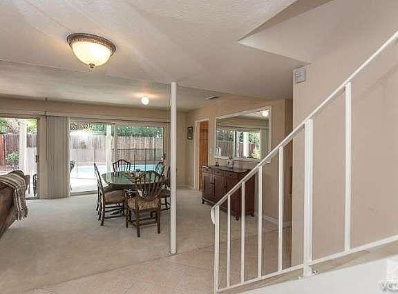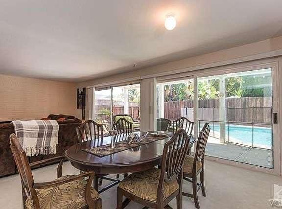 Beautiful 4 Bedroom, 3 Bathroom Pool Home on corner lot with over 2,100 square feet of living space. Tropical, private backyard with sparkling pool, portable child proof fencing, covered patio and large yard area. Full bathroom downstairs. Formal dining room and large living room with fireplace and double sliders over looking the serene backyard. Bright kitchen opening to breakfast nook and family room with custom French doors to back patio. Master bedroom with large sitting balcony. 3 additional good sized bedrooms. Updated bathroom vanities. Direct access 2 car garage. Close to shopping, parks and schools. Welcome Home!